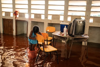 La escuela primaria sirve de refugio para tres familias. “El abuelito de mi esposo es muy entrón y dio la cara con la profesora para que nos dieran la llave. Si no, hubiéramos abierto por la fuerza porque ya no teníamos donde ir”, dice María Alejandra Negrete, una mujer de 32 años. Cuando llegaron hace 10 días, el piso aún estaba seco. Ahora, está inundado. María Alejandra cuenta que lloró durante horas cuando despertó y sintió que el colchón estaba húmedo. Aún hay lluvias en las partes altas de la cuenca del Sinú. El agua los persigue y no sabe a dónde más irse.