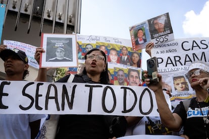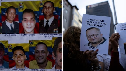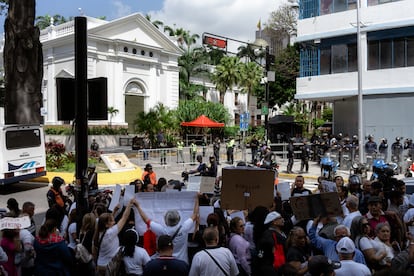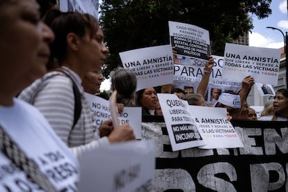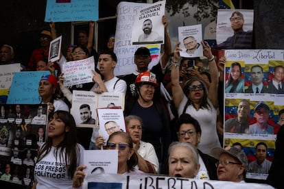 “No pedimos perdón, exigimos libertad” fue una de las consignas que coreaba el grupo de unas doscientas personas reunidas en el centro de Caracas, un espacio que durante años ha sido resguardado con celo por el chavismo para evitar que marchas y protestas de sectores considerados opositores lleguen a las zonas donde se concentran las sedes de los poderes públicos. “Los pueblos son del pueblo y el pueblo los reclama”, gritaban. Entre los asistentes había algunos de los excarcelados en los últimos días, que han recibido medidas cautelares con restricciones a su libertad. También estaban familiares de militares que han cumplido condenas desde hace más de un año y que aún no han sido liberados.