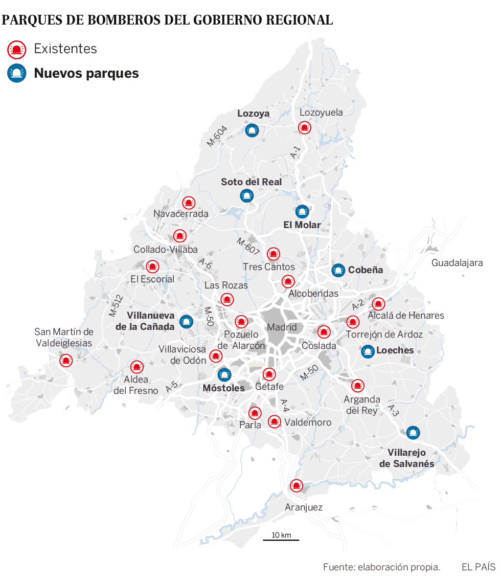 La Comunidad de Madrid va a poner en marcha en las próximas semanas un plan para construir ocho nuevos parques de bomberos de forma que los tiempos de respuesta en caso de un siniestro se reduzca a menos de 10 minutos. Con este recorte en los tiempos de asistencia se pretende aumentar la supervivencia de las personas que se vean envueltas en un incendio o en un accidente de tráfico. Este plan supondrá además la contratación de unos 500 bomberos más para poder cubrir los nuevos puestos que se creen.