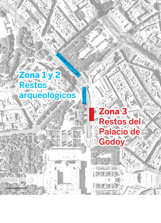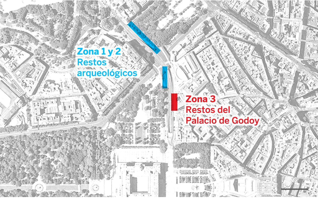 La incógnita que tendrá que resolver la consejería es si considerará que estos yacimientos también son considerados bien de interés cultural (BIC) como el palacio de Godoy, que cuenta con la máxima protección patrimonial desde el año 2000. En ese caso, deberían ser conservadas en el lugar en el que Sabatini levantó el edificio y el diseño original de la calle de Bailén, que en origen se llamó calle de la Nueva Regalada. De hecho, en 1997 el Ayuntamiento de Madrid reformó el Plan General de Ordenación Urbana e incluyó la novedad de la conservación in situ de los restos arqueológicos de manera prioritaria sobre la intervención urbanística.