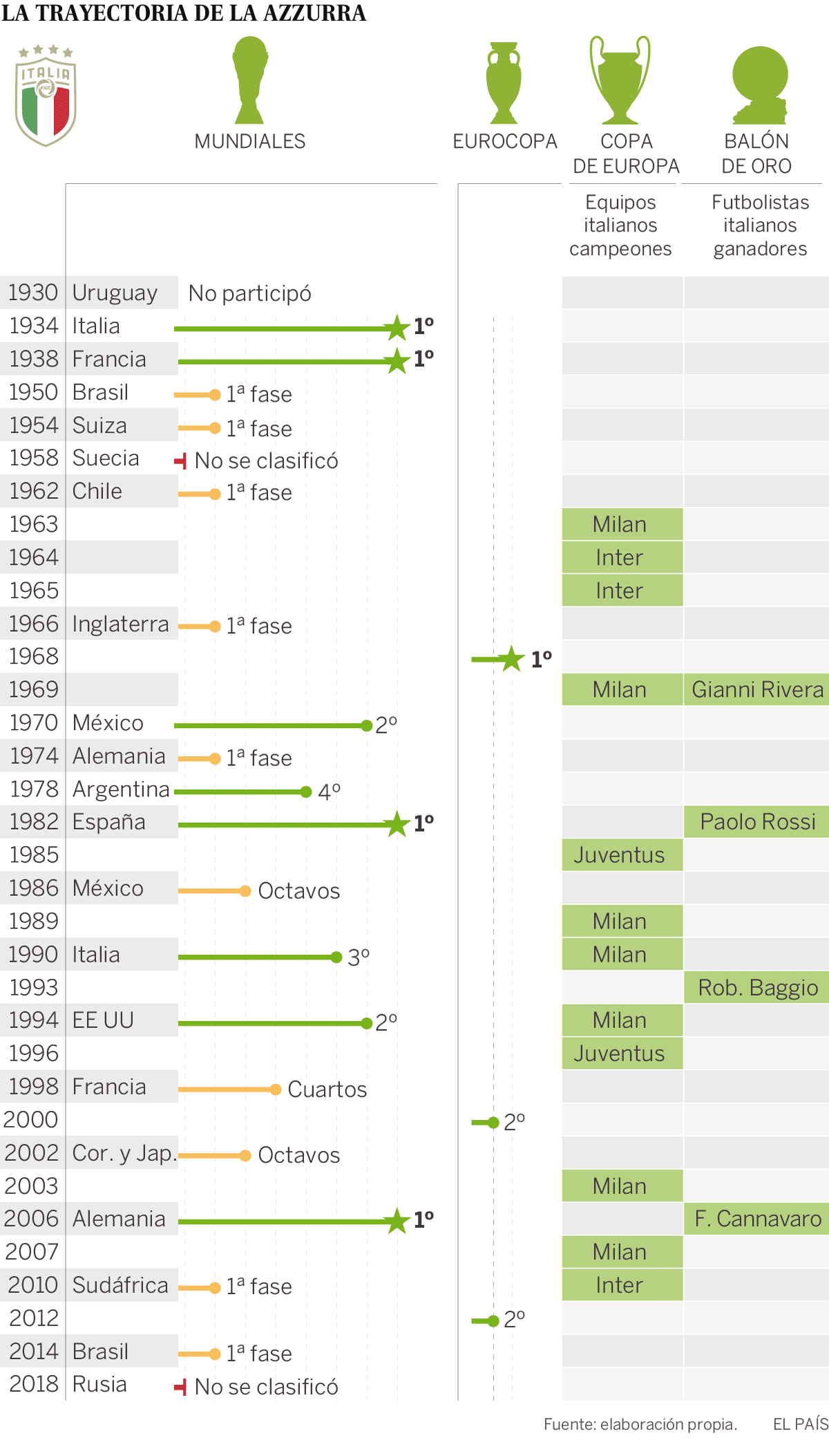 “Para el fútbol italiano es un desastre. Es una situación casi inédita que desde luego daña su imagen. A veces hay que tocar fondo para levantarse y es el momento de hacer examen de conciencia”, analiza Ramón Rodríguez, Monchi, director deportivo de la Roma. Para él —“no dejo de ser un recién llegado”—, sin embargo, el fiasco mundialista no responde a un descenso en la calidad del juego, sino a factores de largo recorrido. “El potencial del fútbol italiano no coincide con esta eliminación. Es un fútbol que está creciendo mucho, fundamentalmente porque tiene muy buenos entrenadores y porque se está trabajando bien a la hora de captar talento”, comenta. “El análisis ha de ser más amplio que una simple personalización de la culpa. Esto ya viene de lejos… En los Mundiales de 2010 y 2014 cayeron eliminados en la fase de grupos. Ya venían avisando”, dice.