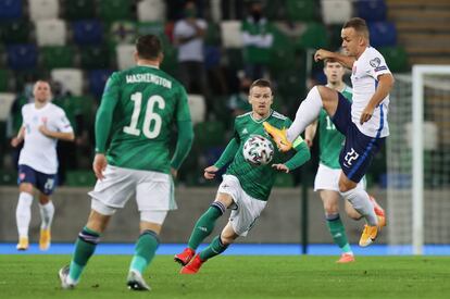 Eslovaquia logró un gran triunfo en Irlanda del Norte (1-2), donde se jugó con público en las gradas. Kucka adelantó a Eslovaquia y un gol en propia puerta de Skrinier forzó la prórroga. En ella, un tanto de Duris permitió la clasificación de Eslovaquia, que vuelve a repetir presencia en el torneo continental de selecciones para ser rival de España.