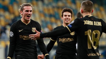 A juzgar por la alineación no parecía que el Barça jugara un partido de Champions. Ausentes por lesión Piqué, Busquets y Sergi Roberto, no viajaron Messi ni De Jong y tampoco jugaron de salida Alba, Dembélé ni Griezmann. La ausencia del francés fue un chasco porque después de pasar por el confesionario del Universo Valdano se le esperaba para que se reivindicara en ausencia del 10. Tampoco encontró sitio Riqui Puig. A Koeman le quedó un equipo raro, repleto de novedades, ninguna tan trascendente como la de Mingueza. No hay más centrales disponibles que el del Barça B. Asegurado prácticamente el pase a octavos, la jornada propiciaba jugar con la formación y al técnico le quedó un once muy juvenil —la media era de 24 años— y en las antípodas del que salió goleado en Lisboa. No había más testimonios de la goleada ante el Bayern que Ter Stegen y Lenglet.