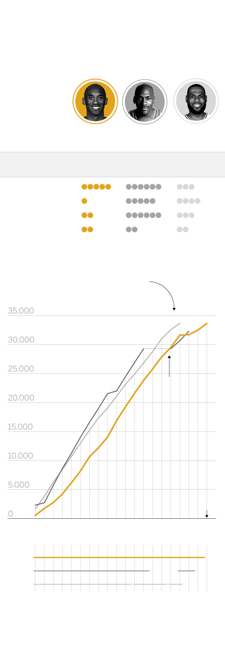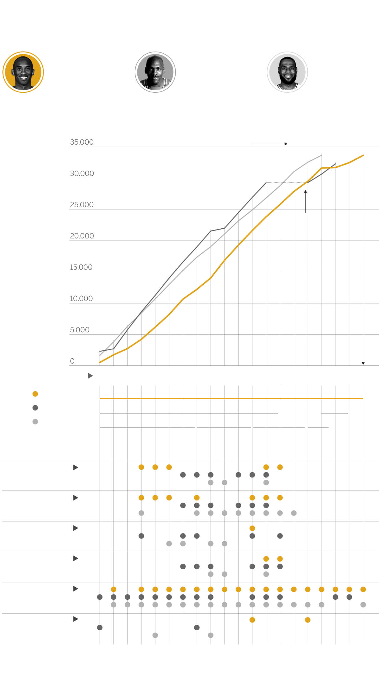 Bryant siempre fue considerado el sucesor de Michael Jordan, el mejor jugador de la historia. Tras su retirada, sólo LeBron ha sido capaz de alcanzar las estratosféricas cifras de Kobe.