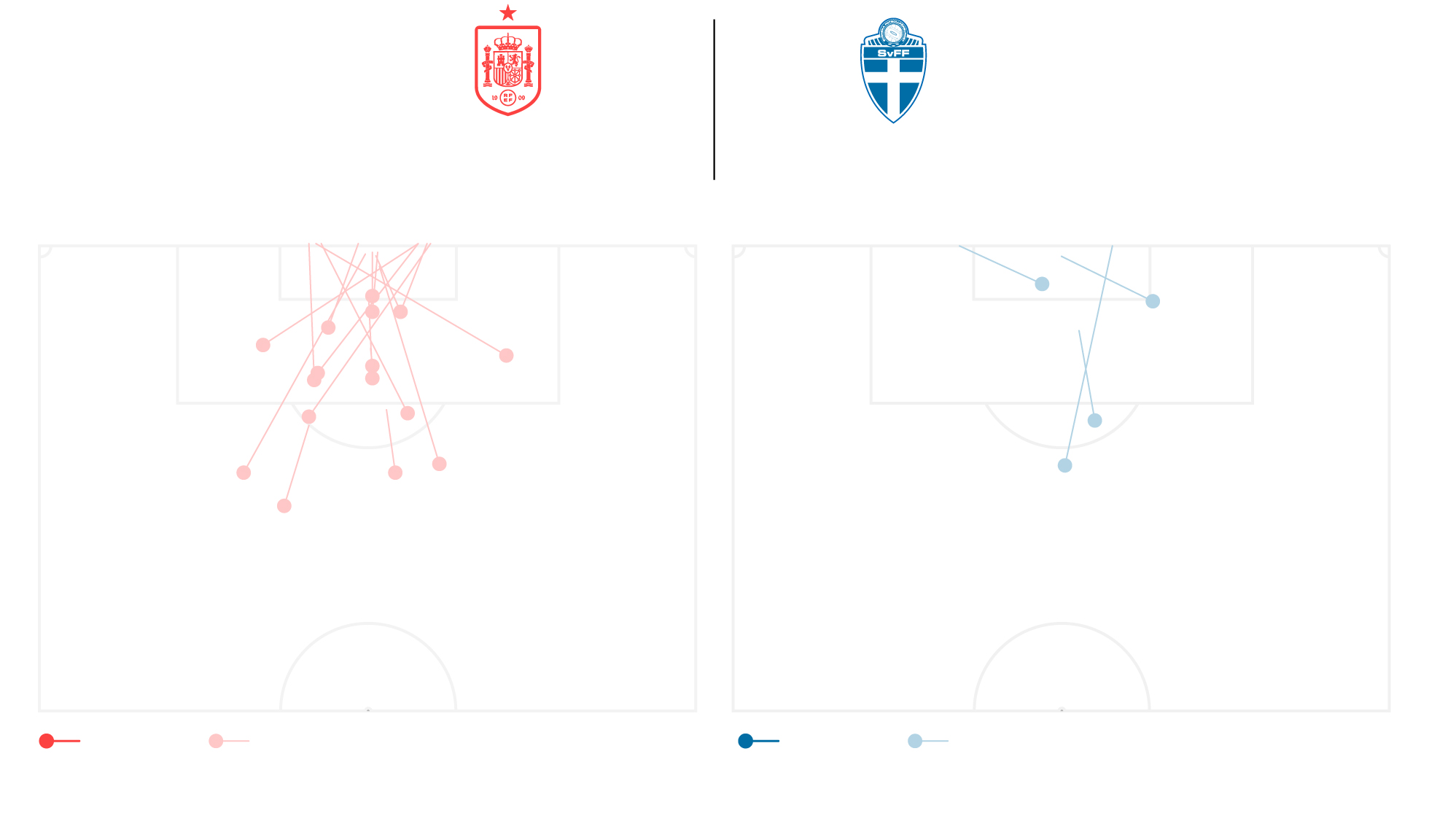 Suecia no intento combinar en ningún momento ante la alta presión de España y se encomendó al juego en largo en busca de sus delanteros.