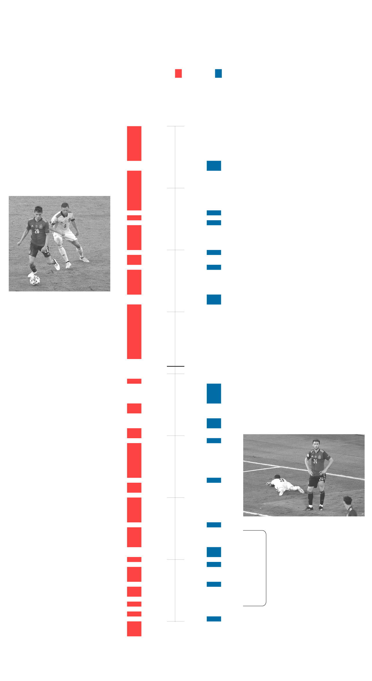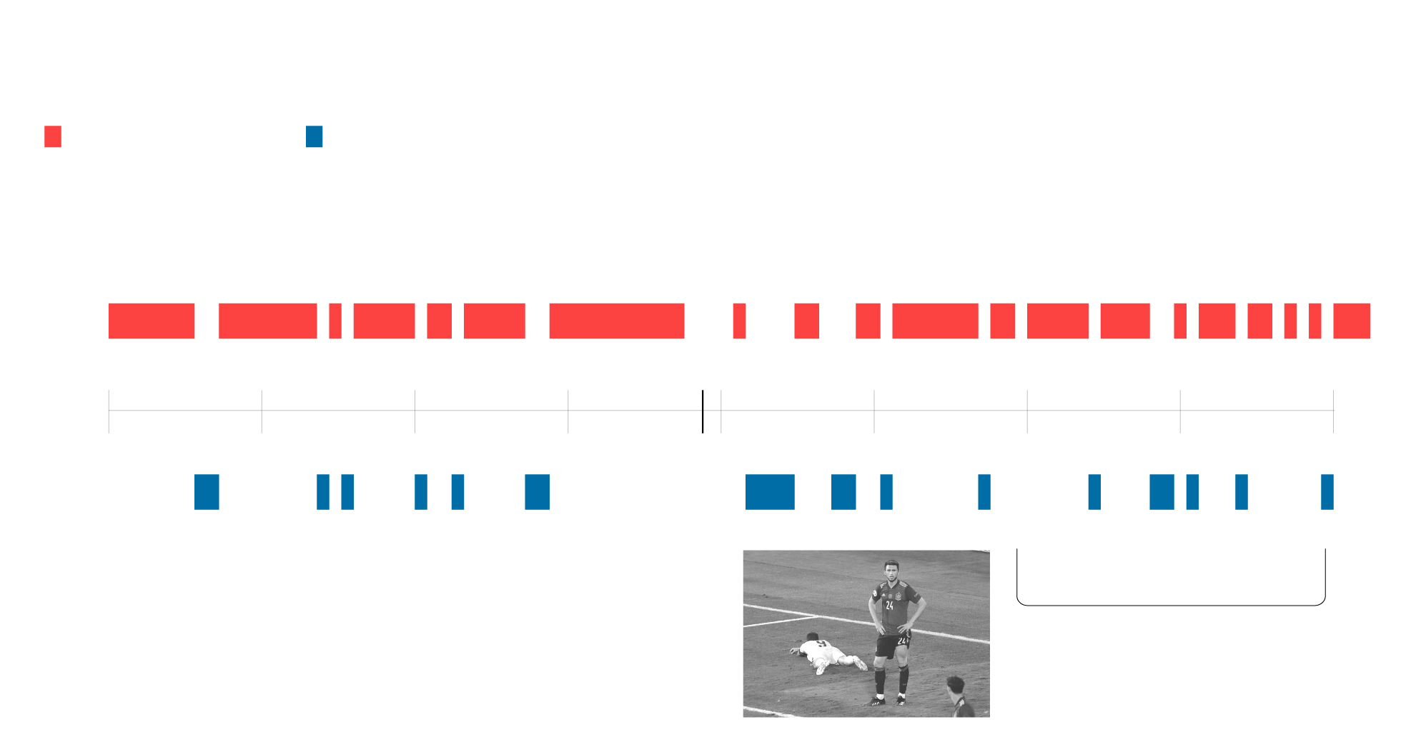 El gráfico otorga la posesión minuto a minuto al equipo que mantuvo el control del balón durante más tiempo.