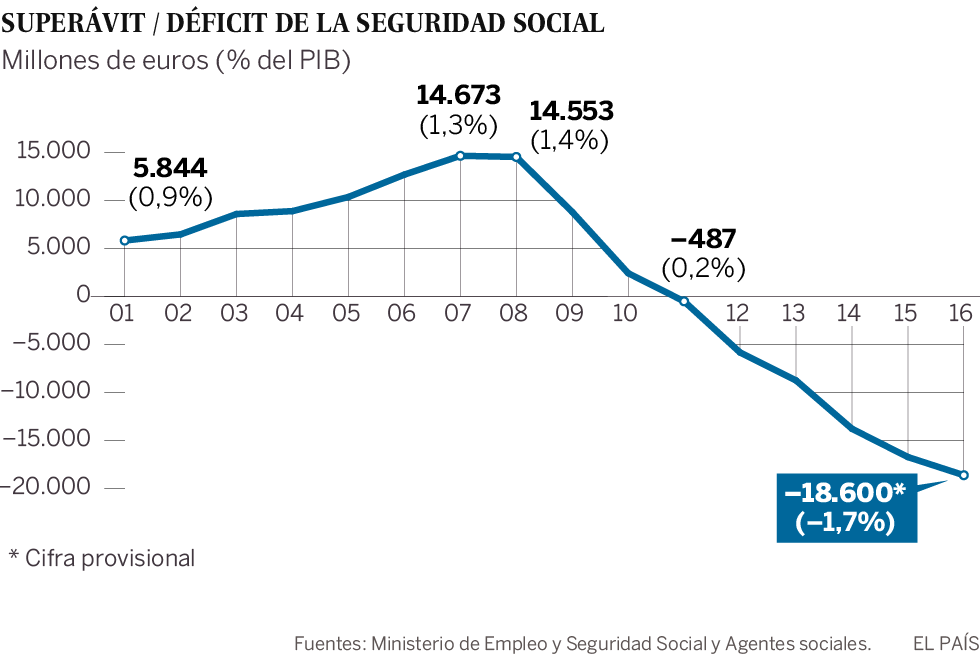 El agujero financiero de la Seguridad Social ronda los 18.500 millones en 2016