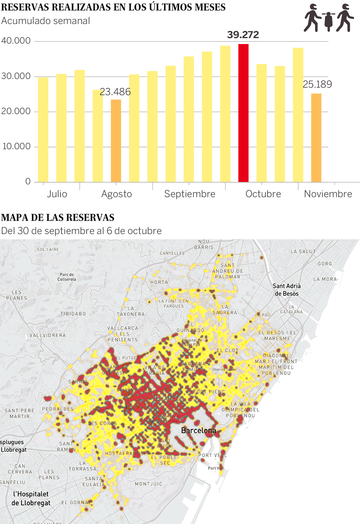 Una de las piezas clave para entender la nueva movilidad urbana, el sistema de alquiler de corta duración de escúteres ecológicos barcelonés encuentra innegablemente la demanda. Desde el 15 de julio hasta el 3 de noviembre, se registraron de media unas 32.400 reservas semanales de motos eléctricas compartidas, con un pico de 39.272 entre el 30 de septiembre y el 6 de octubre, según datos de la aplicación de movilidad multimodal Chipi.