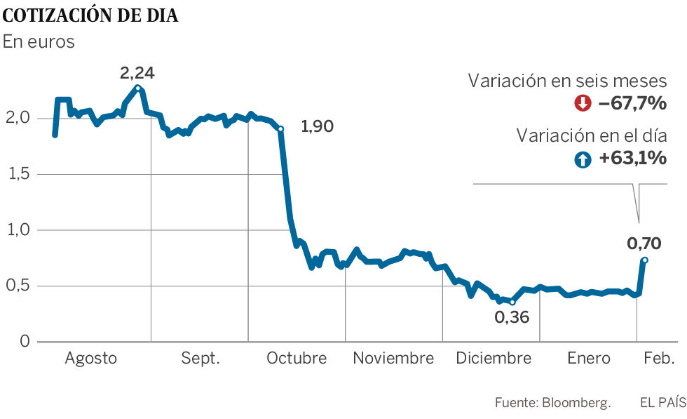 ¿Es una oferta alta o baja? Todo depende de cuándo compraron los inversores. La oferta de 0,67 euros supone pagar una prima del 56,1% respecto al precio de los títulos de Dia el lunes (0,43 euros). Y es el mismo precio que tenían a principios de diciembre pasado. Por eso este martes se dispararon desde primera hora en Bolsa, y cerraron a 0,70 euros, tras una subida del 63,1%. Sin embargo, si el precio de esa opa se compara con el coste de las acciones hace seis meses, es sin duda una oferta de bajo coste: en agosto cotizaban a más de dos euros. Hace justo un año, antes del caos, a 3,74 euros.