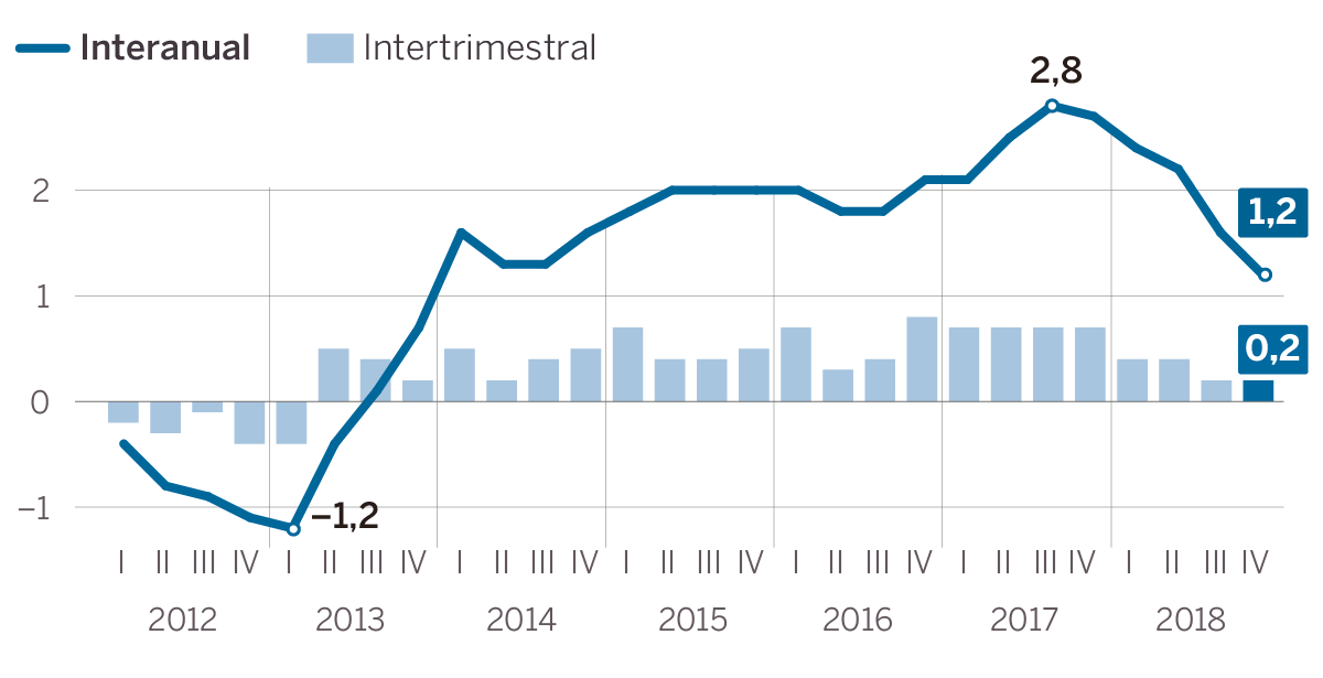 El crecimiento del PIB se queda en el 0,0%, impulsado por la demanda interna pero lastrado por la exportación