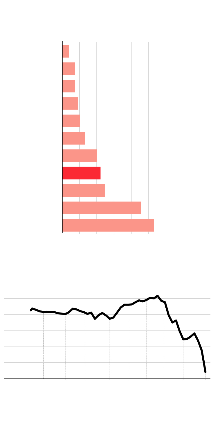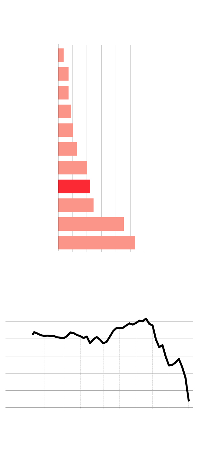 El Ibex sufrió la cuarta mayor caída de su historia, la más aguda desde el 24 de junio de 2016, la jornada posterior al referéndum del Brexit, cuando el selectivo español se dejó un 12,35%. Las grandes plazas europeas sufrieron batacazos similares: la Bolsa de Milán se dejó más de un 11%; el Euro Stoxx, un 8,45%; el CAC francés, un 8,39%; el DAX alemán, un 7,94%, y el FTSE británico, un 7,69%. Antes, el Nikkei de Tokio había retrocedido un 5,07%.