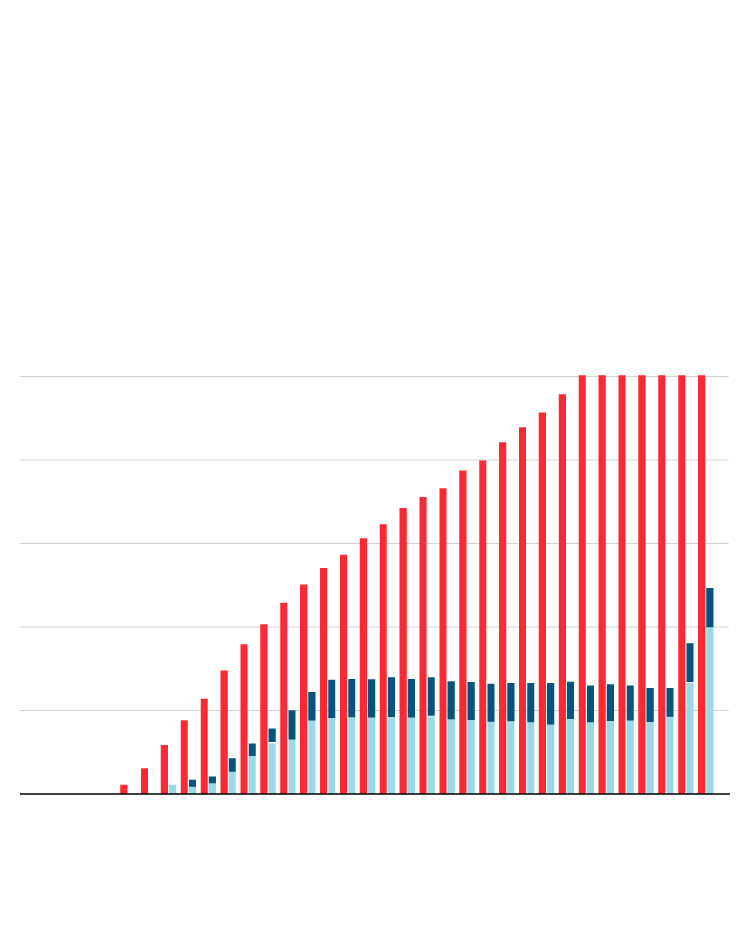 El Tribunal de Cuentas completa sus números con los préstamos que el instituto público ha necesitado para hacer frente a sus obligaciones en los dos periodos que los ha precisado: en los noventa, cuando mientras asumía esos costes impropios, precisó de 31.828 millones en créditos para afrontar gasto sanitario; y lo sucedido en 2017 y 2018, cuando el Estado ha prestado 24.000 millones a la Seguridad Social para pagar las pensiones contributivas porque las cotizaciones no han llegado. Esta última cantidad ha continuado creciendo en 2019 y 2020.
