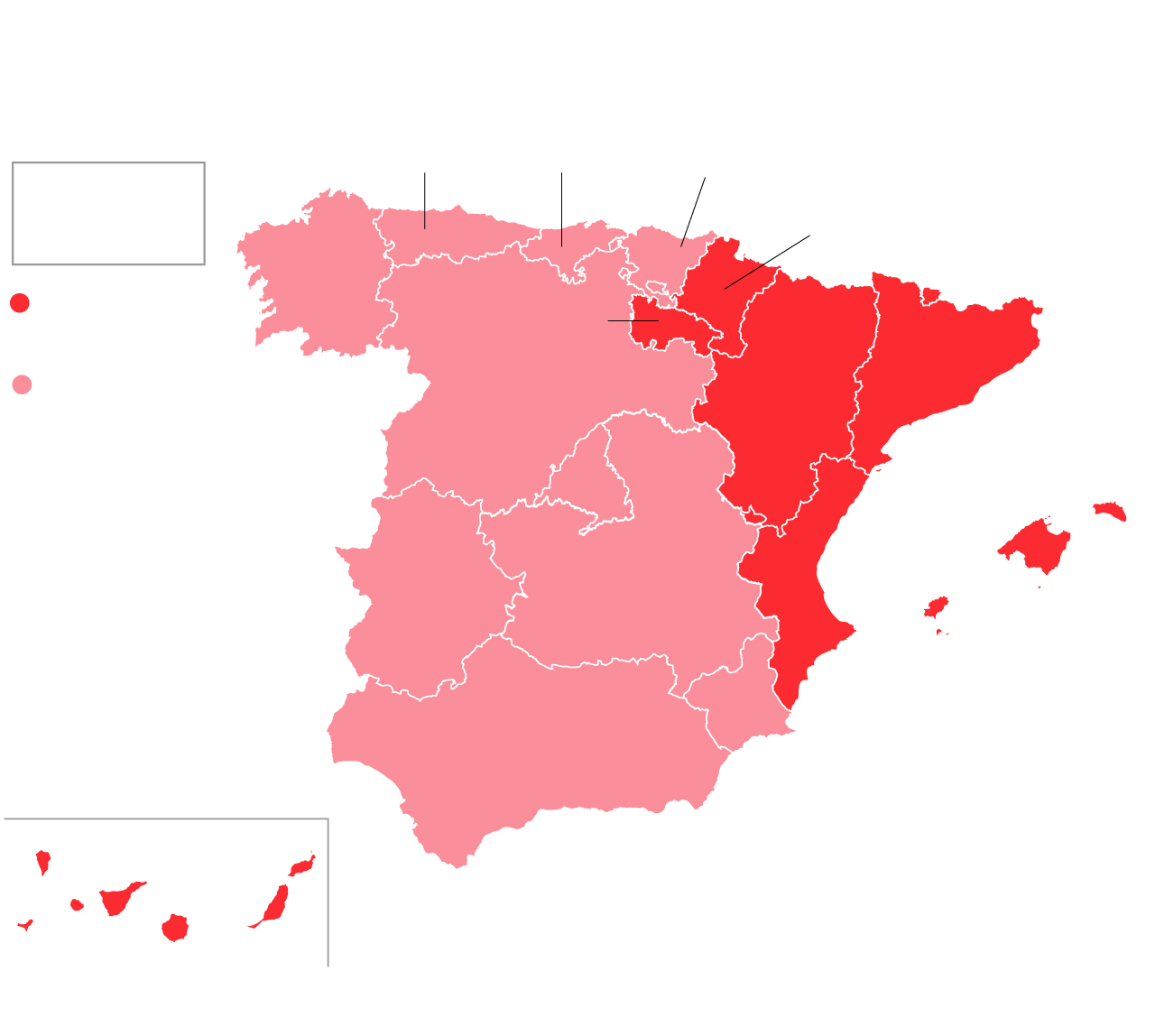 Otras autonomías que se comportaron peor que la media nacional fueron Navarra (-20,9%); La Rioja (-19,5%) y Aragón (-19%). Con la automoción totalmente parada en abril quizás el sector haya influido en los números de la comunidad foral.