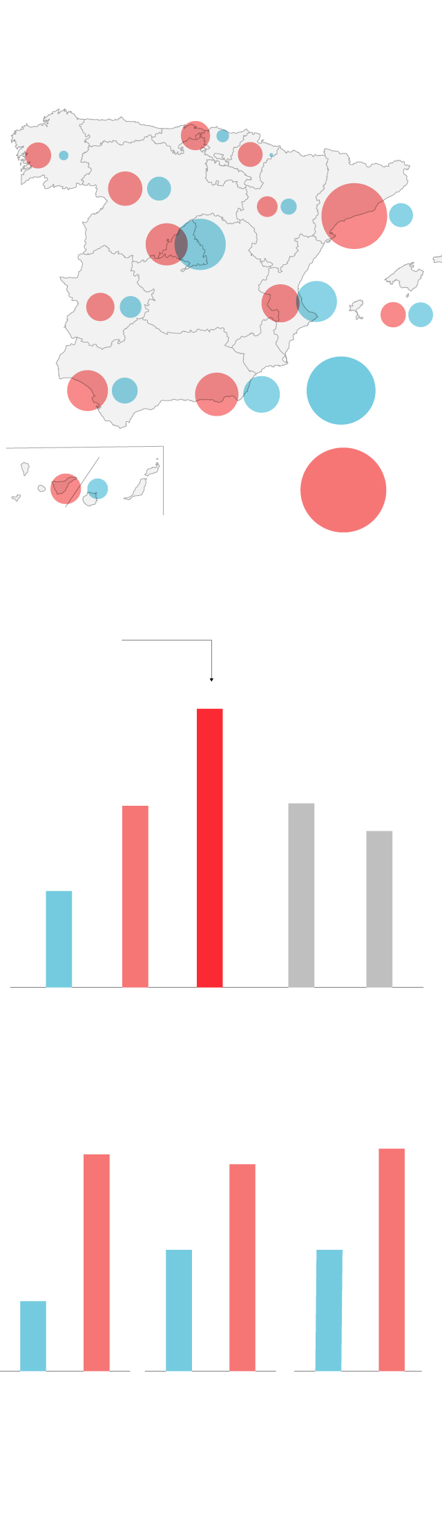 El banco catalán contaba, a cierre del primer semestre, con algo menos de 4.500 oficinas, 4.000 de ellas en territorio nacional y algo menos de 500 en Portugal, tras echar el cierre a casi otro medio millar en los últimos 12 meses. La cuarta parte de sus sucursales en España están en Cataluña. Fuera de esta comunidad, su presencia es especialmente fuerte en la Comunidad Valenciana, Baleares y Navarra, además de en Madrid. En todas ellas, pero sobre todo en Madrid y en la Comunidad Valenciana, las sinergias se antojan muy jugosas. Bankia, por su parte, contaba a finales de junio con una red de casi 2.300 oficinas, prácticamente las mismas que un año antes. Por comunidades autónomas, su presencia es muy relevante en su principal fortín, Madrid (casi 630 sucursales), seguido por Valencia (400), Andalucía (casi 320) y Murcia (160).