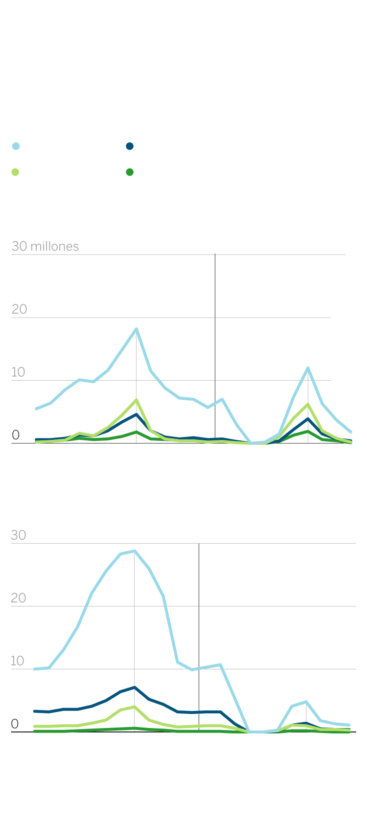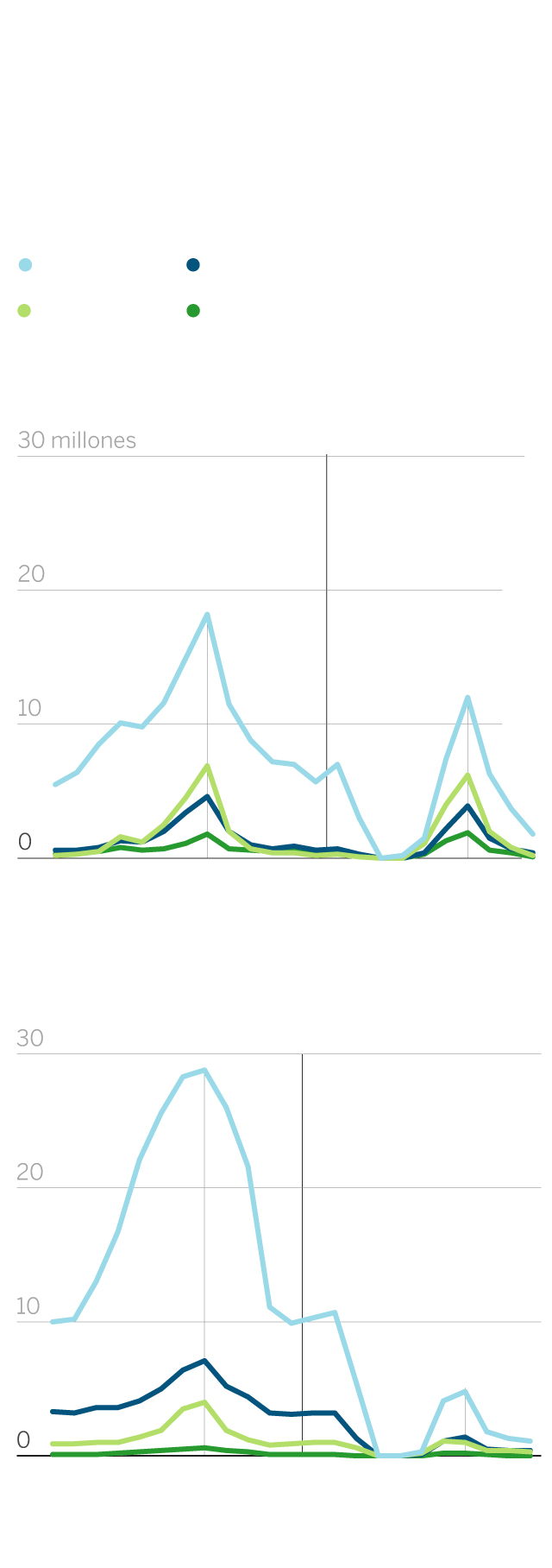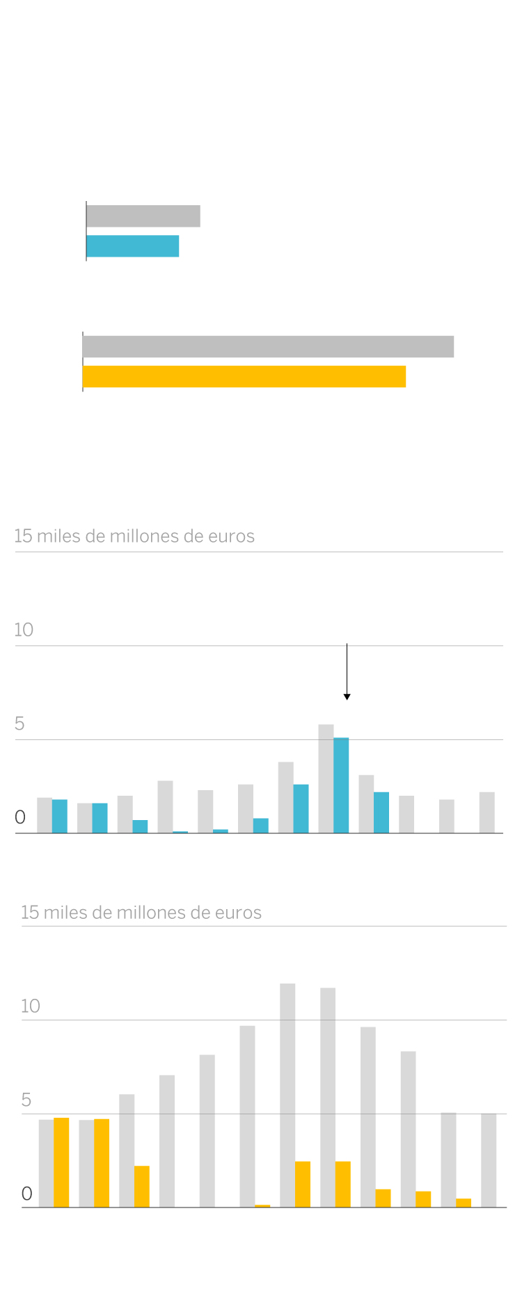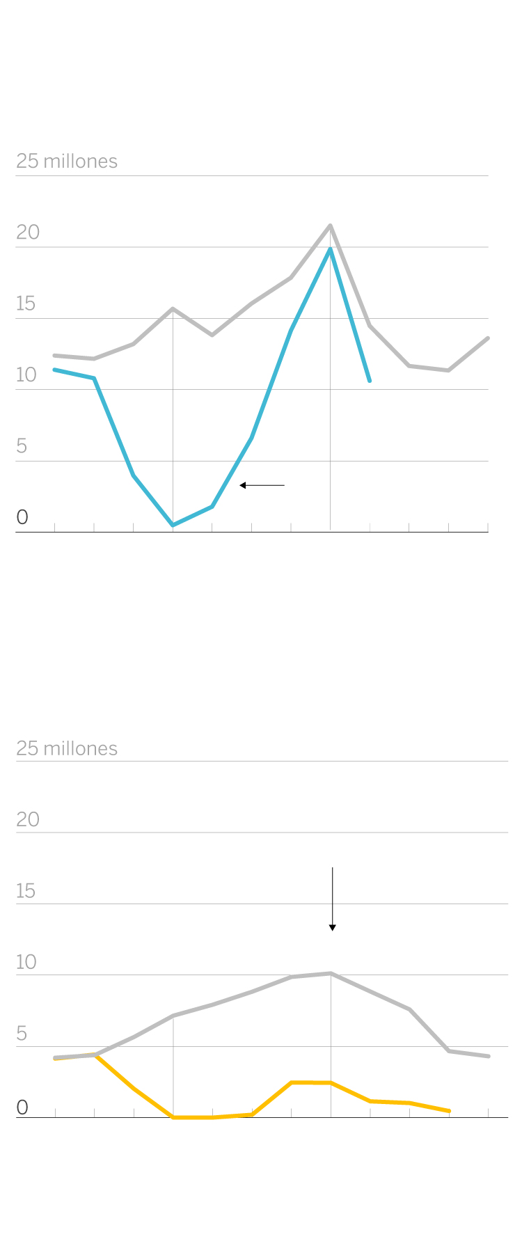 Por la parte de las pernoctaciones —las noches que se pasan en un alojamiento turístico—, el INE da dos datos diferentes para los residentes en España. Por un lado, en la encuesta de turismo de residentes, hasta septiembre se anotó un descenso del 28%. En este caso cuentan las noches, por ejemplo, en segundas viviendas en propiedad o en casas de familiares y amigos, algo que tiene una repercusión económica más liviana para el sector. Si solo se contabilizan las opciones de mercado (hoteles, apartamentos, alojamientos de turismo rural y campings), que son las que atañen a la industria turística, la encuesta de ocupación hotelera recoge un desplome del 50% hasta noviembre.