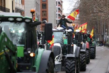 Esta concentración se iba a celebrar el 29 de enero pero la borrasca Kristin forzó a retrasarla hasta este miércoles. Los convocantes de la manifestación aseguran que a las protestas van a acudir trabajadores del campo “de todas partes de España”.