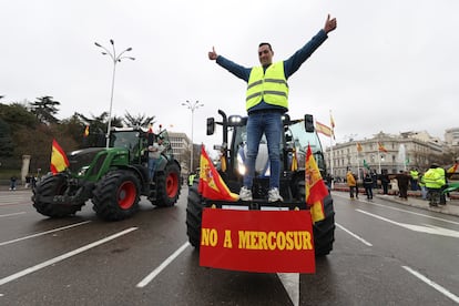 Varios tractores pasan frente al Ayuntamiento de Madrid. Jaime VillanuevaUn manifestantes sobre uno de los tractores con el lema "No a Mercosur", este miércoles por el paseo del Prado de Madrid. Jaime VillanuevaAgricultores conducen sus tractores por el centro de Madrid durante la protesta.Albert Gea (REUTERS)Manifestantes reciben a los primeros tractores en la Plaza de Colón de Madrid, este miércoles. Carlos Luján (Europa Press)Varios tractores entran en la ciudad por Vía Lusitania, este miércoles. A. Pérez Meca (Europa Press)Protesta de agricultores con sus tractores por el centro de Madrid, este miércolesJaime VillanuevaVarios ciudadanos aplauden la llegada de los tractores por Puerta de Toledo, este miércoles. Jesús Hellín (Europa Press)Una mujer grita eslóganes durante la marcha en Madrid.Associated Press/LaPresse (APN)Protesta de agricultores por el Paseo de la Castellana de Madrid, este miércoles. Albert Gea (REUTERS)Un agricultor durante una concentración en la Plaza de Colón de Madrid, este miércoles. Carlos Luján (Europa Press)Un tractor a su entrada a la capital por Puerta de Toledo, este miércoles. Jesús Hellín (Europa Press)Columna de tractores a su llegada a Madrid, este miércoles.Albert Gea (REUTERS)Varios tractores circulan por le paseo del Prado de Madrid.Jaime VillanuevaProtesta de agricultores por el centro de Madrid, este miércoles. Albert Gea (REUTERS)