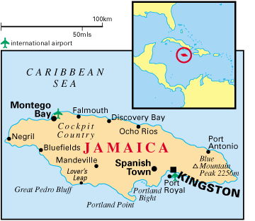 Capital: Kingston .Idioma: inglés .Superficie: 10.990 km2 .Cómo llegar: con American Airlines vía Miami o con BritishAirways vía Londres. Puntualmente algunos touroperadores españoles tienen paquetes muy económico de avión + hotel.Más información: web de la Oficina de Turismo de Jamaica, en español