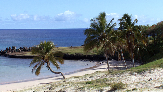 Otro grupo de moai restaurados es el de Anakena. Estos son también de visita obligada, pero sobre todo por el playazo que se extienden a sus espaldas. La playa de Anakena es la mejor de la isla (una competición fácil de ganar: solo hay dos), con su arena blanca y refulgente y un bosquecillo de palmeras traídas de Tahiti. Es el lugar de la isla que más te hace recordar que estás en la Polinesia.
