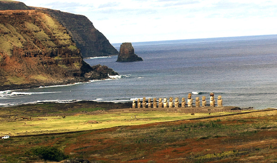 Todo el mundo habla de que los rapanui talaron sin control para transportar los moai y se quedaron sin un solo árbol. Parece que es una leyenda, o al menos, no la razón primera. Los científicos se inclinan a pensar hoy día que fue producto de una plaga introducida por el mismo hombre. El ratón polinesio, una especie de cuy o conejo de Indias que trajeron los primeros pobladores porque era parte de su alimentación, se multiplica a una velocidad asombrosa: una sola pareja puede llegar a generar millones de individuos. Y se comían las bayas de la palma polinésica que cubría la isla. Se piensa que la acción combinada del hombre y de una especie introducida por él acabó con la foresta original. ¿Os suena de algo? Por eso se dice que Pascua es un ejemplo en pequeñito de lo que le puede pasar al mundo: superpoblación, especies invasivas introducidas por el hombre, mala distribución de los alimentos…