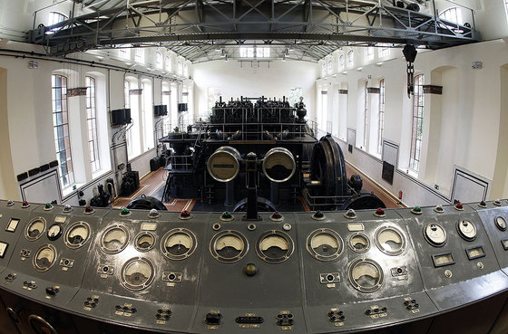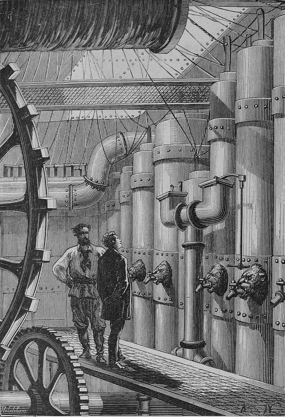 Esta última es un espacio que haría feliz a cualquier amante de la estética Steam Punk: enormes engranajes de acero pavonado, diales, transformadores, alternadores, conmutatrices exafásicas, calderas de aire comprimido, depósitos d e aceite, rectificadores de mercurio y tres enormes motores térmicos, de 1.500 CV cada uno, que evocan la sala de máquina s de un transatlántico. O la del Nautilus, el submarino del capitán Nemo.
