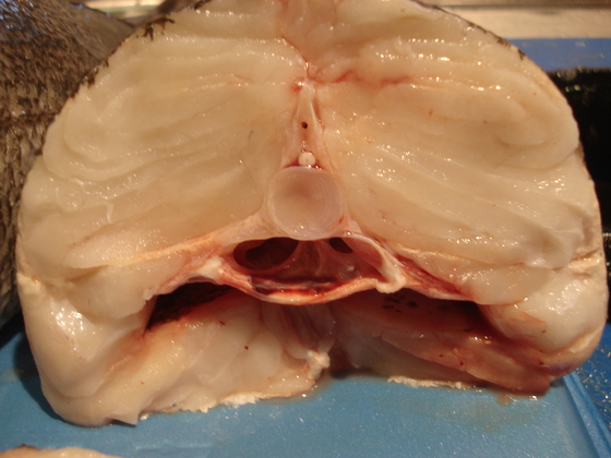 A partir de ahí la tormenta. Sobre un lecho de hielo picado colocaron la merluza gallega al lado de una sudafricana, ambas de 5 Kg. Me aseguraron que observadas desde la cola las sudafricanas tienen un morro más afilado. Imposible, ni ellos mismos fueron capaces de apreciarlo. Luego insistieron que los vientres de las españolas son más plateados y brillantes. Esta vez sí las diferencias eran perceptibles. Finalmente llegó el corte y las cosas se aclararon. “La nacional cuando es buena, resulta tan blanca que parece recién cocida”, aseguró Bolaños. “Su carne es flexible y se desconcha por capas” Todo cierto en comparación con la otra suavemente grisácea y más compacta.