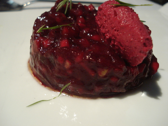 Hay trampantojos geniales como el tartar de remolacha de Rodrigo de la Calle, o el tocino vegetal de Miguel Ángel de la Cruz con lascas de remolacha azucarera confitada en aceite de piñones.