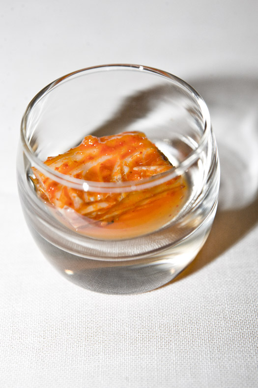 Como yo estaba en el lugar de la grabación, las cocinas del Palace, nada más terminar el directo a las 21,30 horas probé algunos de sus kimchis, de col, de hojas de mostaza, de pepino y de rábanos. Encurtidos con distintos sabores y texturas.