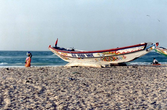 Piragua en la playa de Saint-Louis, Senegal. Foto A lovely word.