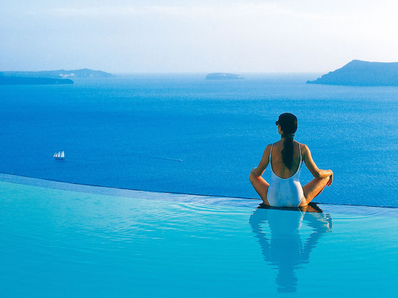 Piscina del hotel Jade Mountain. Isla de Santa Lucía.Una piscina infinita no es solo aquella en la que te cuesta mucho hacerte un largo. Con este término (Infinity Pool, en inglés) se designa a las que han sido diseñadas (o creadas por la naturaleza) de forma que el agua parece extenderse hasta el horizonte, fundirse con el mar o flotar en el aire. Todo muy zen,