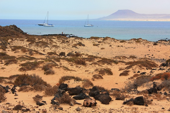 En el brazo de mar que separa las playas lanzaroteñas de Papagayo y el mar de dunas de Corralejo, al norte de Fuerteventura, se halla uno de los espacios naturales más salvajes y sorprendentes de Canarias: la isla de Lobos. Sus 4,5 kilómetros cuadrados brindan la oportunidad de nadar o bucear en piscinas naturales de un azul intenso, caminar por un paisaje volcánico florido de tabaibas, o comer con los dedos una vieja a la plancha con papas y mojo picón en el pequeño restaurante de El Puertito. Tres catamaranes con fondo de cristal -el Isla de Lobos, el Majorero y el Celia Cruz- enlazan tres veces al día en ambos sentidos el puerto de Corralejo y la isla de Lobos por 16 euros, ida y vuelta. La duración de la travesía es de unos veinte minutos.