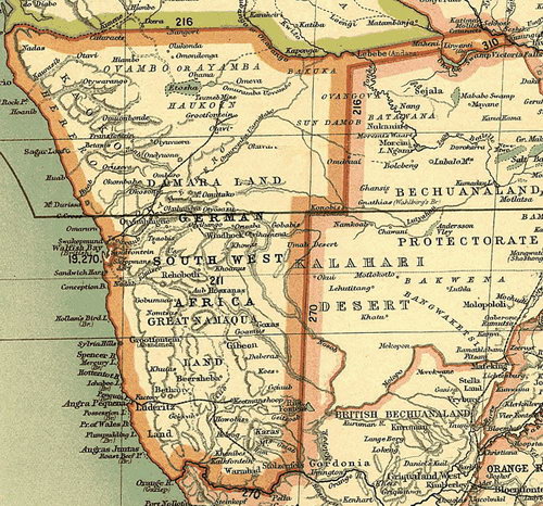 La historia comienza, como tantas otras, alrededor de una mesa de negociaciones en Berlín. Era 1884 y las grandes potencias del momento se repartían el mundo. Al II Reich le fueron adjudicados los actuales Togo, Camerún, un área cerca de la actual Ruanda, y Namibia. De los cuatro, éste último era más grande, estaba relativamente libre de las enfermedades tropicales, y aunque sus tierras eran semidesérticas, se ajustaban perfectamente a la crianza del ganado. Así que Alemania vio en esta zona, a la que pronto llamaría German South West África un Eldorado para su expansión colonial y, sobre todo, para buscar ese ‘espacio vital’ del que ya venía hablando el geógrafo Friedrich Ratzel, preocupado porque miles de alemanes tenían que emigrar del país. Qué mejor solución que la de hacerlo a una ‘segunda Alemania’, conviertiendo el Segundo Reich (1871-1919) en ese gran imperio con el que fantaseaba el Káiser Guillermo II. Era un idílico planteamiento que se encontró con un pequeño problema: las mejores tierras ya estaban ocupadas por tribus locales lo que dificultaba que los colonos se establecieran allí provocando que para 1903, tan sólo unos 4.000 colonos se hubieran asentado en el lugar.
