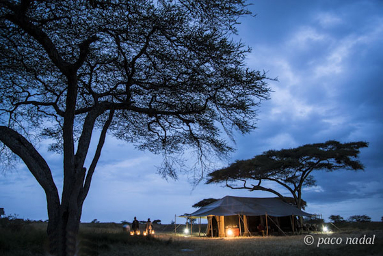 Campamento Sero 5, en el corazón del parque. Una noche oímos un rugido de león muy cercano y nos quedamos helados. Iluminamos con las linternas unos matorrales y vimos reflejados cuatro ojos sanguinarios. Dos leones macho nos observaban agazapados entre la hierba, a unos 60 metros del campamento. Nos metimos en las tiendas (con cierto acojone, por qué negarlo) y no salimos en un par de horas.