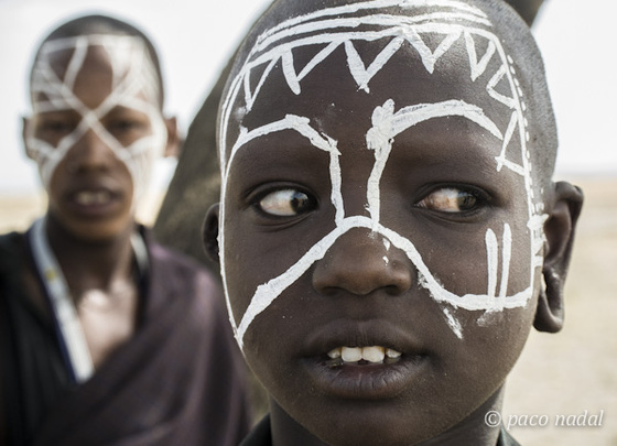 Tras la ceremonia de circuncisión, los adolescentes masai se visten de negro y se pintan la cara de blanco para anunciar a todas las aldeas su nueva condición.
