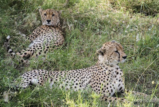 Una pareja de guepardos, los fórmula 1 de la sabana, deja pasar las horas más duras de calor al abrigo de una sombra. Pueden llegar a alcanzar los 120 km/h.