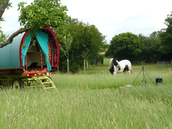 A a un parque de caravanas zíngaras en los bucólicos paisajes de Somerset (Inglaterra),