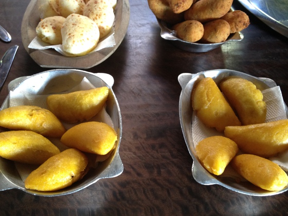 Desayuno minero. Una experiencia. Antes que un desayuno un despropósito. Un almuerzo de media mañana en el restaurante / merendero Xapuri (www.restaurantexapuri.com.br) a las afueras de Belo Horizonte. Sobre la mesa, boliños de mandioca con queso de Minas Gerais, pao de queijo, bolo de fobá y un inacabable surtido de mermeladas. Como complemento frijoles con arroz y lomo de cerdo guisado. Y además, decenas de mermeladas y dulces: pedaços de dolçe de leite, cocada de maracujà, goiabada cascâo...