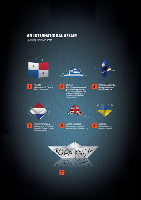 Trafigura contrató con una compañía holandesa, Amsterdam Port Services, la recepción y tratamiento final de los residuos. Pero al comenzar la descarga las autoridades detectaron la peligrosidad de estos. Los holandeses revisaron el coste del tratamiento al alza, entonces Trafigura rechazó el precio y decidió volver a cargar los residuos en el Probo Koala. El buque viajó primero a Estonia buscando descargar los residuos o quizás verterlos en el mar. Ante la vigilancia y seguimiento de las autoridades holandesas, Trafigura ordenó el transporte de la carga tóxica hacia África. Hubo intentos de descarga en Togo y en Nigeria, pero en ambos casos las autoridades lo impidieron.