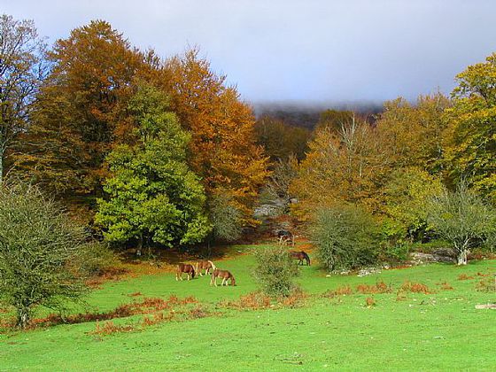 En Navarra, las hayas del parque natural de Urbasa pintan uno de los mejores escenarios otoñales. Se puede acceder a Urbasa desde la localidad de Baquedano, de donde parte un sendero que lo recorre, en hora y media, hasta la fuente del río Urederra.