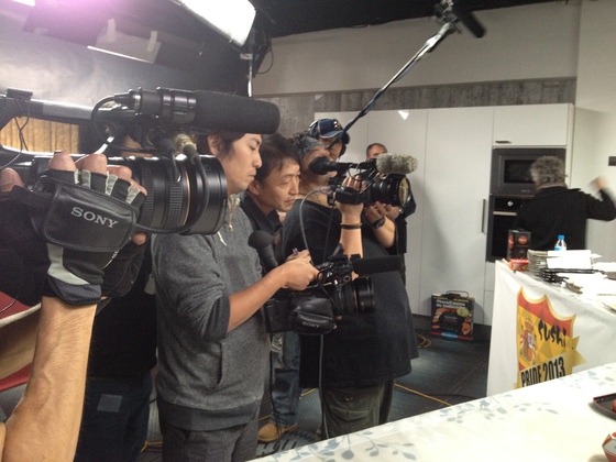 La iniciativa correspondía a la TV ABC Asahi (www.asahi.co.jp) con el propósito de grabar un show para fin de año. El pretexto, observar las tendencias de su cocina en el extranjero. El título, “Japón retando al mundo”.Como la propuesta me pareció muy original acepté encantado. Antes tuve que rellenar un breve cuestionario sobre mis conocimientos de sushi. Incluso me preguntaron quién creía que iba a ganar el combate. Así que el pasado miércoles me presenté en el lugar de la cita en Madrid, en un laboratorio fotográfico (www.clorofiladigital.com) que desconocía.
