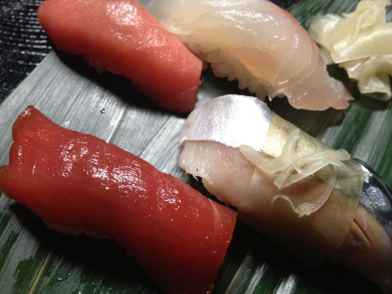 Y..., final del preámbulo. Cuando se nos hacía la boca agua e íbamos a empezar nos concedieron descanso. Después de media hora nos sentaron frente a los cocineros. ¿Qué había pasado con los platos anteriores? Nadie nos dijo nada. Silencio. Vuelta a comenzar de cero. Conforme preparaban sus especialidades las íbamos degustando. Al final estábamos confundidos. Los resultados no eran comparables. El trabajo del japonés era ortodoxo mientras que el del español se saltaba todas las normas. Me gustaron más los makis de Ricardo, me parecieron más técnicas las piezas de sashimi de Imada, mientras que en los nigiris encontré que había empate técnico.