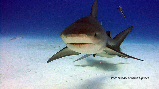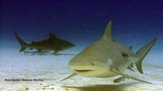Los tiburones que aparecen en las fotografías son tiburones toro (Carcharhinus leucas) y efectivamente están considerados una de las cuatro especies más peligrosas para el hombre. Este tiburón es el único que puede introducirse en los ríos de agua dulce y debido a la falta de visibilidad se producen ataques a humanos. En Playa del Carmen se realiza esta inmersión de noviembre a marzo y nunca se han producido ataques ni a buceadores ni a bañistas. El buceo con tiburones se está convirtiendo en una gran fuente de ingresos para los paises que protegen a sus poblaciones residentes, ya que son cientos de miles de buceadores los que viajan por el mundo para encontrarse con estos bellos animales. Ejemplos de este tipo de turismo lo tenemos en Bahamas, Fiji, Palau y Mexico.