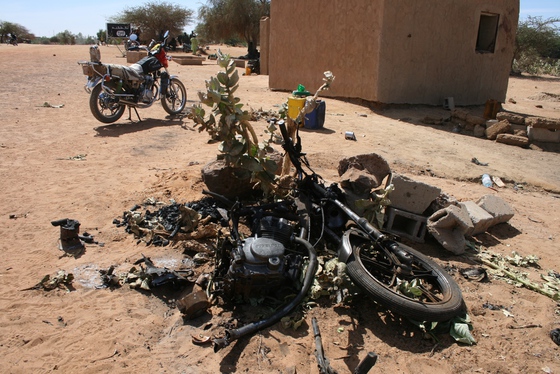 Motocicleta del primer niño suicida que se hizo explotar en el norte de Malí / Foto: J.N.