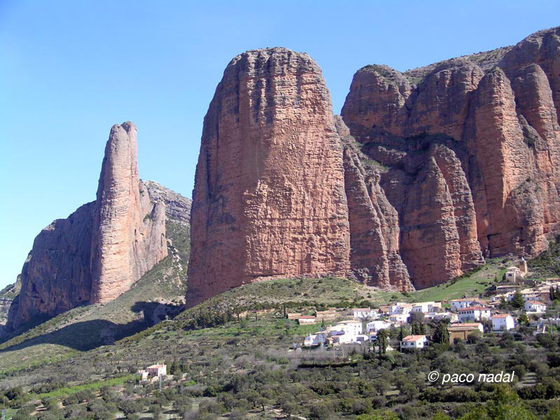 Impresionan solo con verlos a lo lejos. Unas gigantescas mazorcas de piedra conglomerada que se vuelven de oro cuando el sol se acuesta sobre ellas. La capital histórica del montañismo español. Y abajo, diminuto ante la majestuosidad de las paredes verticales, el pequeño pueblito de Riglos, encalado y silencioso, sin apenas ningún elemento que rompa sus hechuras de aldea montañesa.