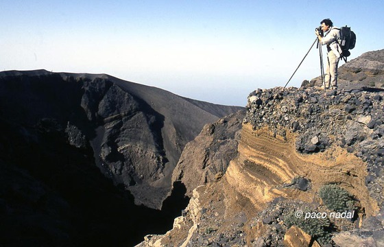 La Palma, como el resto de las Canarias, está hecha a base de fuego y lava. Una génesis volcánica que se hace patente en toda la cresta de conos que forma el espinazo de la isla. Un sendero recorre este paisaje sacado del Averno. Se desliza por un paisaje torturado y único, donde la lava, las escorias y las extrusiones basálticas pintan el decorado con toda la gama del ocre al negro. Hasta el nombre de los volcanes contribuye a la vélelas de la ruta: el Birigoyo, el Nambroque, el Hoyo Negro, el Duraznero…