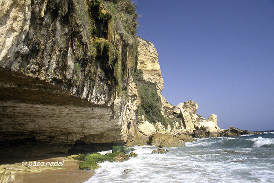 Una pared de arenisca y caliza de casi 100 metros de altura se eleva sobre las aguas del Atlántico entre Barbate y Caños de Meca. Un espacio protegido desde 1989 en el que anidan gaviotas, grajillas, garcillas bueyeras y otras muchas especies de aves marinas. Sobre el acantilado despunta aún la Torre del Tajo, atalaya desde las que los pescadores oteaban las incursiones piratas y los bancos de atunes. En marea baja la base del acantilado deja al descubierto docenas de hermosas calas y playitas, perfectas para un baño en intimidad, a las que solo se accede desde Caños de Meca.