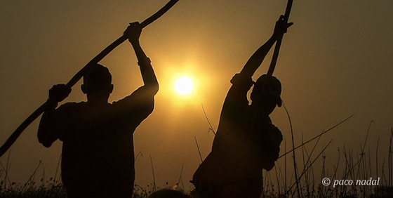 Pescadores del delta del Okavango en su mokoro (Botswana)
