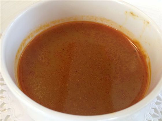 A continuación, a modo de entreacto, una taza del mismo caldo del pescado utilizado para el arroz, una suerte de chupito intensamente yodado.