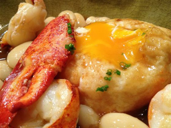 Los tomamos con cuchara sobre un guiso de escudella; en salsa perigeux con foie gras y panceta; envueltos en un ravioli de patata junto a un guiso de conejo en salmorejo, y con judiones, bogavante y salsa americana. Probé la tortilla de tomates cherry y queso comté, y también la tortipizza. Y hasta abrimos boca con unas croquetas de huevo y dos revueltos.
