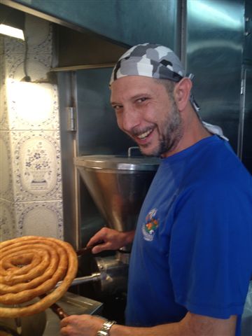 Ayer -- cómo no -- compartí media rosca de mis favoritos. Y como el churrero especialista, Antonio Saravia, trabaja a la vista, fotografié el proceso paso a paso.